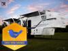 Some of the top features you'll find on these fifth wheels are an armored underbelly tank enclosure and forced air heat, an automatic leveling and stabilization system, and a Juice Pack solar system. Interior features continue on with solid surface countertops with underlighting, fully adjustable, slow rise, blackout roller shades in the main living area, and a pet friendly "Clean Sweep" floor design with no heat vents.