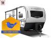 Each model is constructed with a fully laminated walkable roof, 6-sided full-aluminum frame, and a fiberglass front cap with Clear Coat for added protection. You will appreciate the slam baggage doors and 200W solar panel outside, plus there is a Climate Protection Package for better insulation. Inside, you'll love the solid surface countertops, roller shades, and soft close roller bearing drawers.