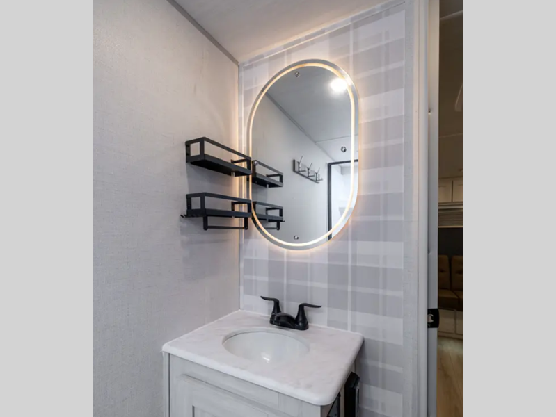 Sleeps 5 Slides 1 Length 30 ft 9 in Ext Width 8 ft Ext Height 11 ft 3 in Hitch Weight 715 lbs GVWR 7715 lbs Dry Weight 6158 lbs Cargo Capacity 1557 lbs Fresh Water Capacity 40 gals Grey Water Capacity 60 gals Black Water Capacity 30 gals Available Beds Queen Refrigerator Type 12V Black Glass Refrigerator Size 10 cu ft Cooktop Burners 3 Number of Awnings 1 Water Heater Type Tankless AC BTU 15000 btu TV Info LR HD TV Awning Info 21' Electric w/LED Light Strip Axle Count 2 Shower Type Standard Electrical Service 30 amp Solar Wattage 200 watts Similar Floorplans