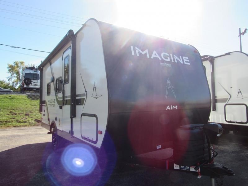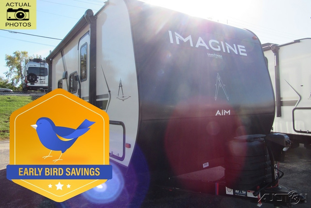 Aim for new destinations in one of these Grand Design Imagine AIM travel trailers! They are constructed to a superior standard with the 4-Seasons Protection Package that features a heated and enclosed underbelly with suspended tanks, a moisture barrier floor enclosure, a double insulated roof and front wall, and more. There is backup camera prep outside, along with a universal docking station, and a power tongue jack. You are sure to feel at home with residential cabinetry, premium window treatments, residential countertops, and a spacious walk-in shower to name a few comforts. The on-demand tankless water heater is a feature you won't want to camp without and the hi-definition LED TV will ensure you'll never go bored on rainy days. Each model also comes with four AIM packages; the Peace of Mind Package, The Ultimate Power Package, The 4-Season Protection Package, and the Solar Package!