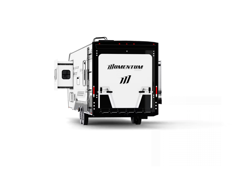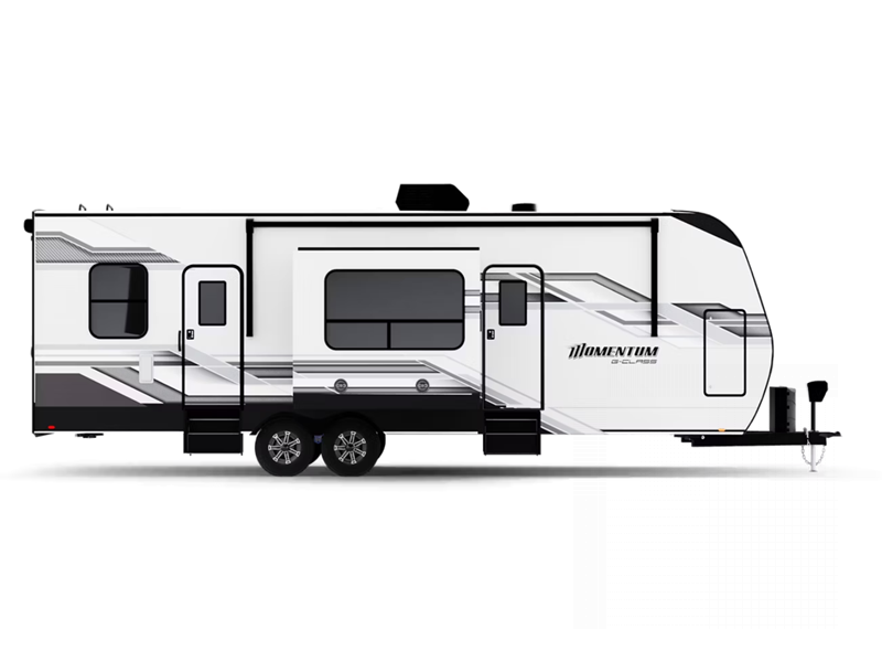The Grand Design Momentum G-Class toy hauler fifth wheels and toy hauler travel trailers are a lighter series without sacrificing Momentum's ceiling and slide out heights or wide-body platform. Both offer a fuel station with an interior and exterior gauge to keep the fun going wherever you take your toys.