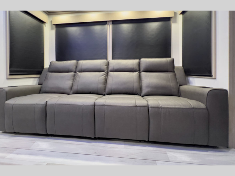 Grand Design Momentum toy hauler 392M highlights: L-Shaped Sofa with Recline ... more about Momentum 392M