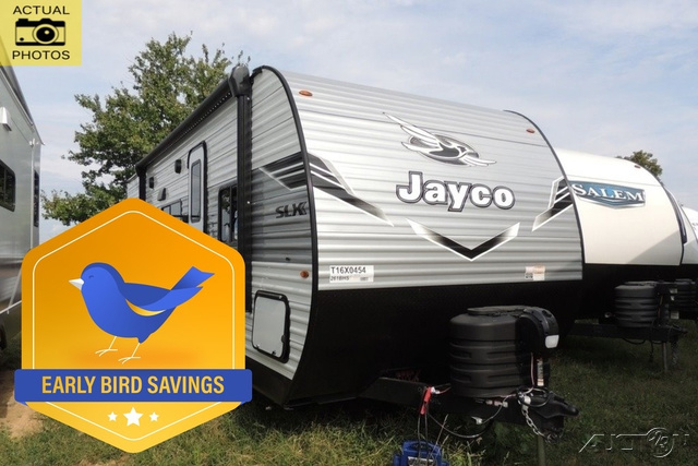 The Jayco Jay Flight SLX travel trailer is quite easy to own because it is lightweight for an easier towing experience. Built on a fully integrated A-frame with galvanized-steel, impact-resistant wheel wells, the Jay Flight SLX has quality at its very foundation. That quality continues on to the electric self-adjusting brakes, easy-lube hubs, Magnum Truss roof system, and LP quick connect. Some of what the mandatory Customer Value Package includes is backup camera prep, Keyed-Alike entry and baggage doors, and an on-demand tankless water heater.