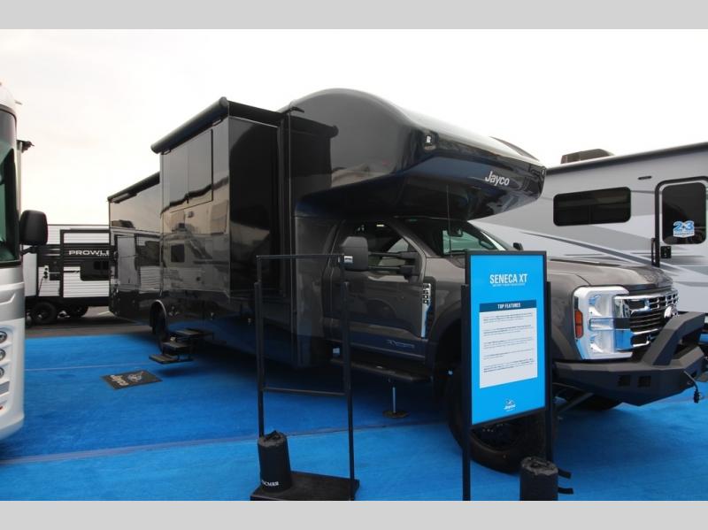 The Jayco Seneca XT Super C diesel motorhomes are a unique addition with all-terrain capabilities! They are built on a durable F600 4x4 and Ford F550 4x4 chassis, and include the JRide Premium ride and handling package for a smooth ride!